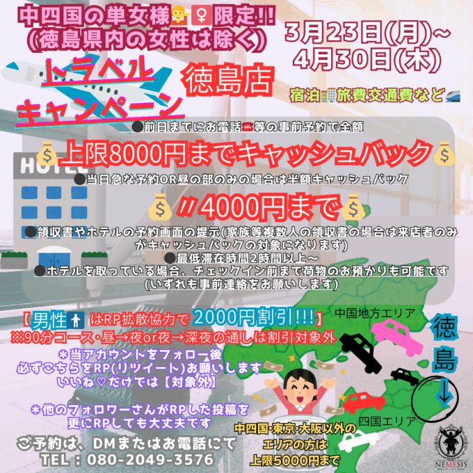 🌸徳島を除く、中四国エリアからお越しの女性の方へ🌸