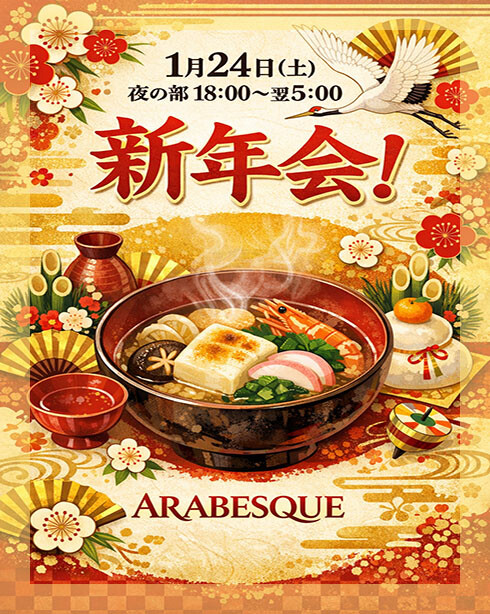 2026年1月24日(土) 夜の部、ARABESQUE新年会開催いたします!!
