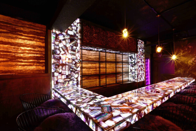 Barカウンター及びゲートは『Agate(紫瑪瑙)』を割り合わせライトアップした唯一無二のカウンター。