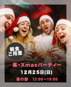 昼下りからクリスマスムード全開パーティーを心ゆくまでノンストップで楽しんじゃいましょう!