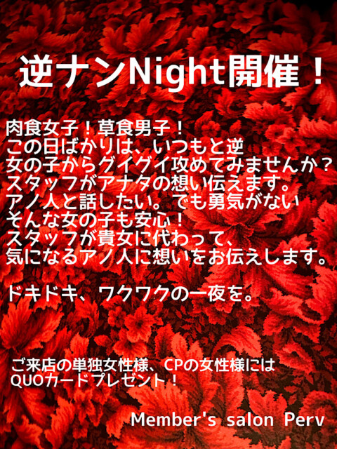 【大阪 Perv】3/3(金)第1回逆ナンNight!