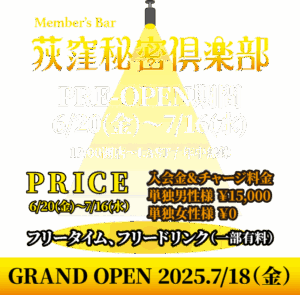 会員制Bar 荻窪秘密倶楽部を掲載 2025 7/14 ニュースリリース プレオープン実施中!2025年7月18日(金)グランドオープン あわせて読みたい 会員制Bar 荻窪秘密倶楽部を掲載 プレオープン実施中!2025年7月18日(金)グランドオープン https://www.mabe-navi.com/post-9594/ ニュースリリース 新着情報 関連記事 【川崎 GARAPAGOS】1/17(土)★パリピナイト★ 【新宿アラベスク】1/17(土) ご新規様チャージ半額です 【五反田スピアー】1/16(金) 激辛フェス! 【横浜 パライーゾ】1/16(金) 酒場バル🍷 【新宿ハッピー】1月木曜日、新規割引 火曜日の夜はハプバー塾 @新宿 AgreeAble 東京 八王子にハプニングバーが近日オープン! 1/10(土) NTRイベント @新宿アラベスク